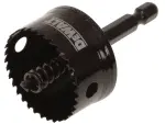 High-performance DeWalt 19mm holesaw with double-tooth design for metal, PVC & stainless steel. Fast cutting & ejection spring.
