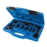 Durable 10-piece valve spring compressor set for small engines (16-30mm). Includes adaptors, handle & case.