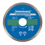 Silverline 110mm continuous rim diamond blade for smooth cutting of ceramic & stone tiles. EN13236 certified.