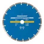 230mm Silverline diamond blade cuts stone, concrete & brick. EN13236 certified, wet/dry use. Fits 22.23mm grinders.