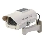 Solar-powered dummy CCTV camera with flashing LED. Weatherproof and easy to install for effective security deterrence.