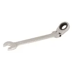 18mm flexible head ratchet spanner with 5° ratchet action and 180° pivoting head. Chrome vanadium steel for durability.