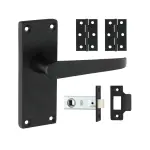 Complete Timco Victorian straight latch door pack in matt black zinc. Includes handles, latch & hinges for easy installation.