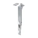 Brass-flush bolt in satin chrome finish, ideal for securing double doors with a sleek, morticed design.