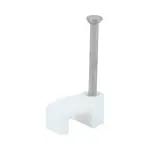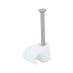 Durable HDPE cable clips with hardened nails (3.5mm fit, 100 pieces). Secures wiring on wood, board & masonry.