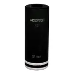 Durable Timco impact socket (21mm, 1/2-inch drive) for use with air tools. Made from hardened steel with corrosion-resistant black phosphate finish.