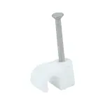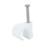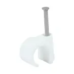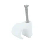 Timco Round Cable Clips (white, 9.0mm) for secure cable management on wood, board & masonry. HDPE with steel nails, pack of 100.