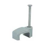 Durable grey HDPE cable clips with steel nails for securing flat twin & earth cables. Pack of 100.