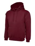 Premium maroon hooded sweatshirt from Uneek. 50% polyester, 50% cotton blend for comfort and durability. Perfect for everyday wear.