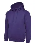 Premium 50/50 poly/cotton hooded sweatshirt with brushed lining, Lycra cuffs and double hood. Available in purple.