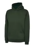 Cosy Uneek kids' hoodie in bottle green, 50% polyester 50% cotton with Lycra cuffs & double hood. Perfect for ages 7-8.