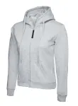 Stylish women's classic full zip hooded sweatshirt from Uneek. Premium blend fabric with Lycra ribbed cuffs and pouch pocket.