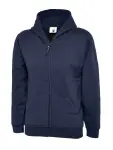 Soft and durable Uneek hooded jumper for kids, made from 50% cotton/polyester blend. Navy, size 11/13 YRS. Machine washable.