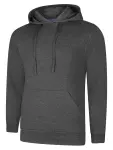 Premium Uneek sweatshirt: 60% cotton/40% polyester, charcoal. Brushed finish, Lycra cuffs & double hood for comfort.