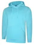 Premium Uneek hooded jumper for comfort & style. 60% cotton, 40% polyester, enzyme-washed in turquoise. Ideal for casual wear.