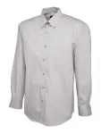 Stylish Uneek men's Oxford shirt in Silver Grey. Wrinkle-free 70% cotton blend with adjustable cuffs & fused collar. Size 19.5.