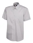 Stylish Uneek Pinpoint Oxford Shirt in silver grey, featuring wrinkle-free fabric and a sophisticated button-down collar. Size 14.5.