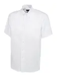 Smart and comfortable Uneek oxford shirt in white. Wrinkle-free 70% cotton blend with button-down collar. Size 18.5.