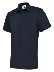 Stylish Uneek men's navy poplin short sleeve shirt, perfect for work and casual wear. Easy-care 65/35 poly-cotton fabric.
