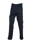 Durable Uneek unisex action trousers in 245 GSM navy fabric, with multiple pockets and reinforced belt loops. Machine washable.