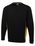 Stylish Uneek unisex two-tone crew neck sweatshirt in black/yellow, 60% cotton, 40% polyester. Snug fit for all seasons.