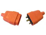 Durable orange rubber connector plug by Dencon, rated at 10A for safe and reliable power extensions.