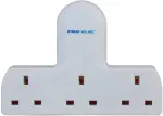 Compact 3-gang plug adaptor by Pro Elec. Converts 1 UK socket to 3, 13A 250V rating, BS5733 compliant. No extension needed.
