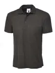 Stylish unisex polo shirt in charcoal, 50% poly-cotton blend. Machine washable with knitted collar & 3-button placket.