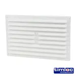 Timco's white plastic louvre grille vent ensures airflow with an insect-proof flyscreen, ideal for internal use (260x104mm).
