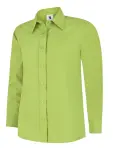 Stylish Uneek Ladies Poplin Long Sleeve Shirt in lime. Tailored fit, 65% polyester, 35% cotton. Perfect for all occasions.