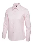 Stylish Uneek women's poplin shirt in pink (4XL). Polyester-cotton blend, long sleeves, and tailored fit for comfort & elegance.