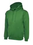 Premium 50/50 polyester/cotton hoodie with brushed lining, Lycra cuffs & double hood. Kelly Green, XS size.