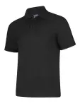 Stylish Uneek unisex polo shirt (50% poly, 50% cotton) with durable stitching & washable at 60°C. Available in black size XS.