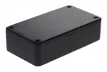 Durable black ABS enclosure (112x62x31mm, IP54). Features PCB mounts & brass inserts for repeated access. Ideal for electronics projects.