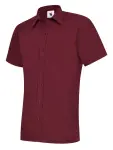 Stylish Uneek men's poplin short sleeve shirt in burgundy, made from 65% polyester and 35% cotton. Perfect for any occasion.