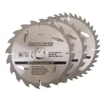 Versatile 3-pack TCT saw blades (184mm) for wood & composites – hardened for durability & smooth cutting.