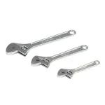 High-quality 3-piece adjustable wrench set by Silverline—150mm, 200mm & 250mm wrenches with chrome-plated steel construction.