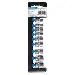 Each socket features chamfered ends and thin walls for a positive and secure fit on fasteners, reducing the risk of slippage and damage. The set includes sizes 8, 10, 11, 12, 13, 14, 15, 17, and 19mm, providing versatility for a wide range of applications.