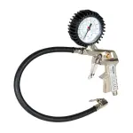 Versatile tyre inflator for cars, bikes & inflatables. 0-220psi gauge, Schrader valve & 400mm hose. Includes adaptors.