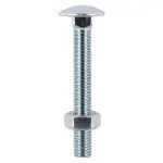 Timco M16x200mm zinc carriage bolts with nuts - grade 4.8 steel with anti-spin shoulder for timber applications.